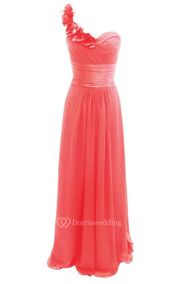 Floral One-shoulder Sweetheart A-line Gown With Ruched Band