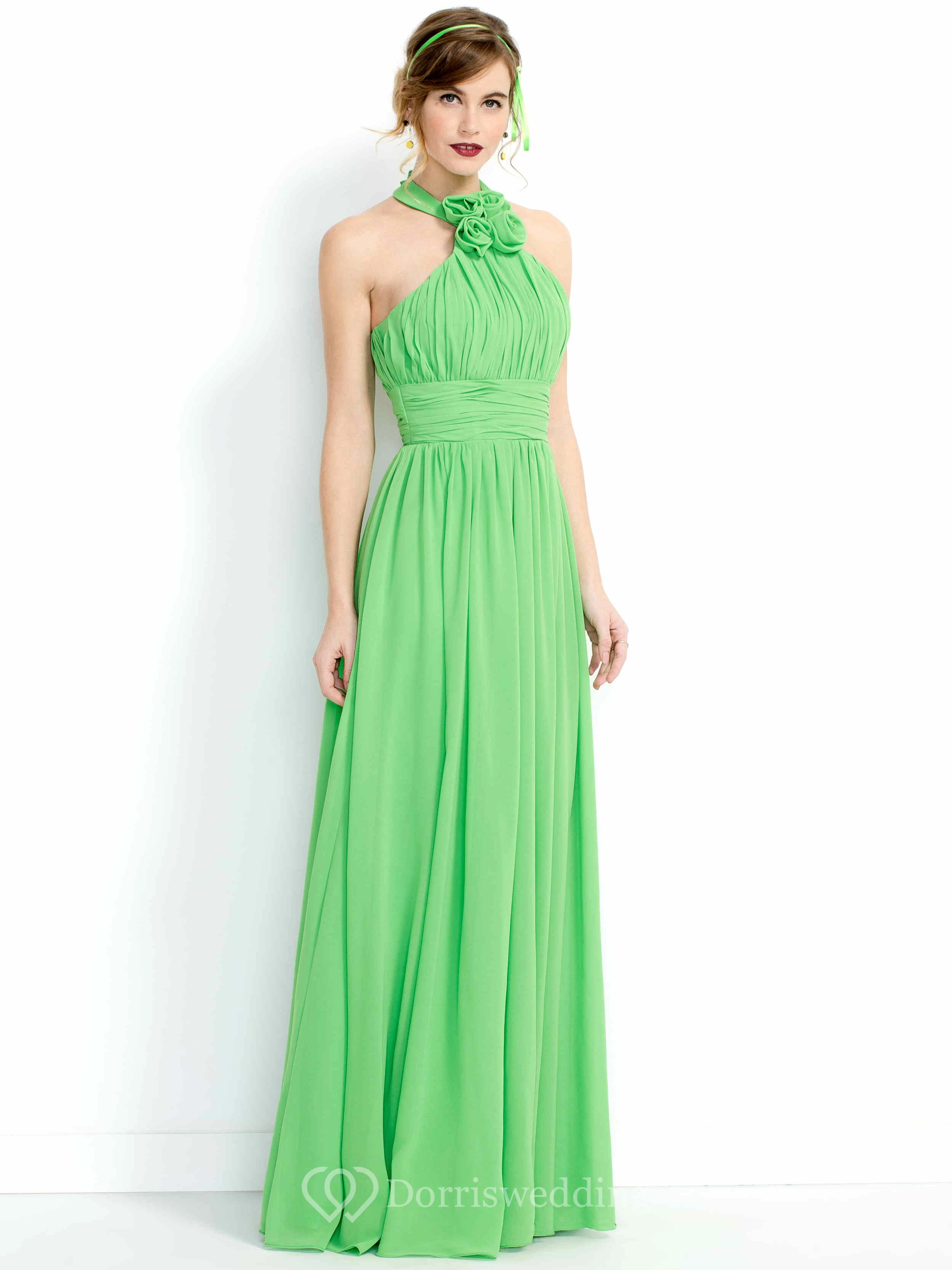 Floral Sleeveless High-Neck Long Chiffon Bridesmaid Dress With Ruching