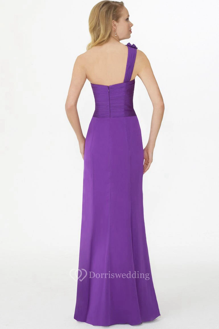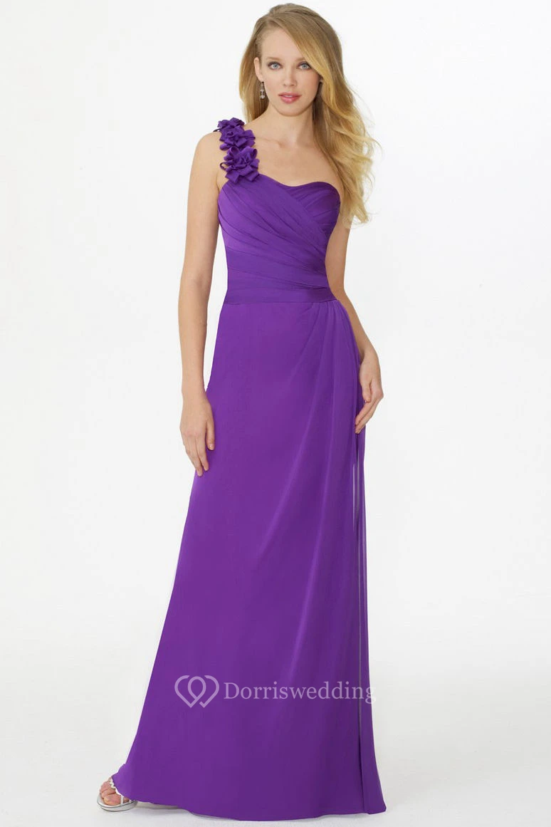 Floral Sleeveless One-Shoulder Chiffon Bridesmaid Dress