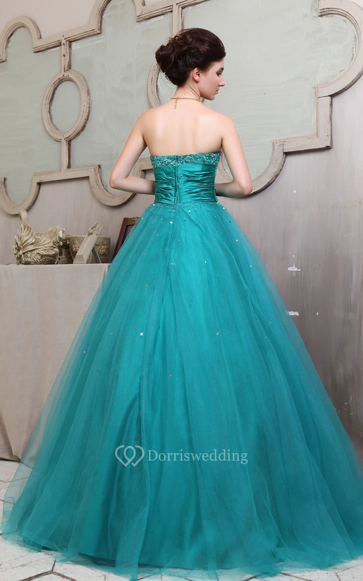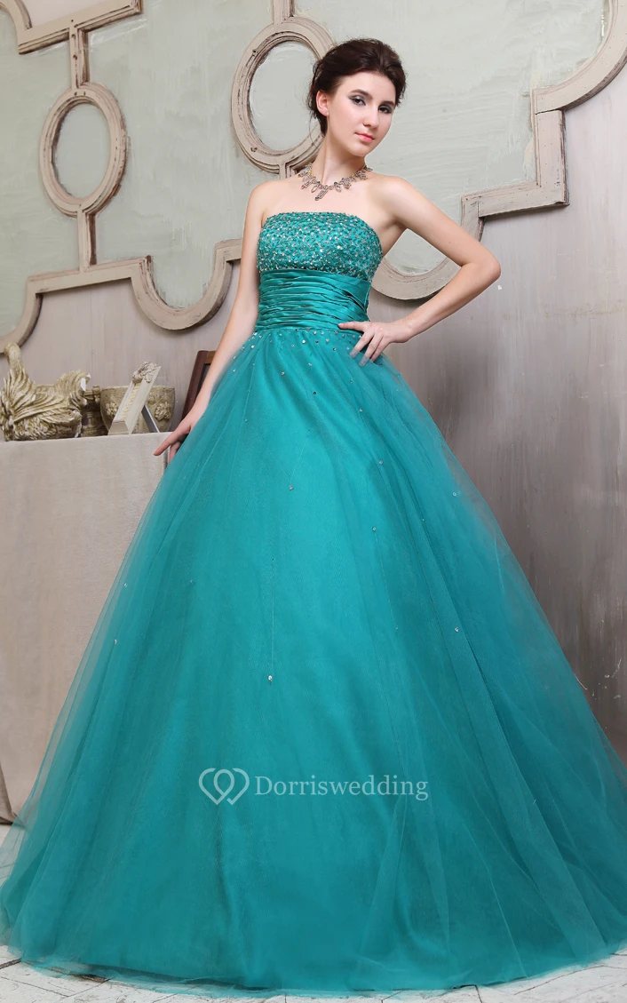Floral Strapless A-Line Ball Gown With Ruffles and Beading