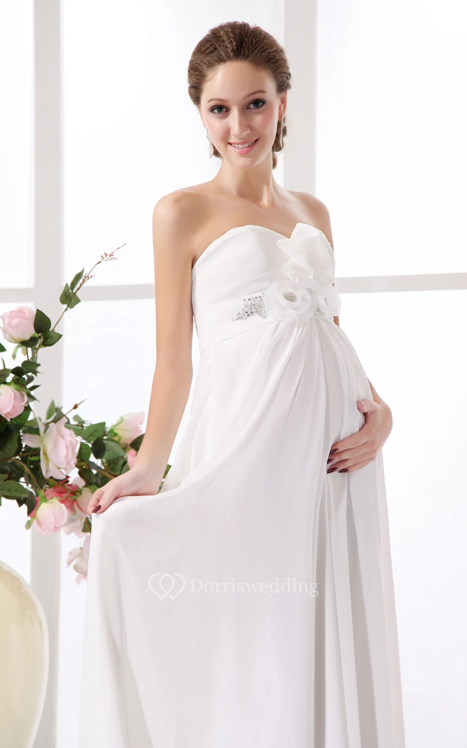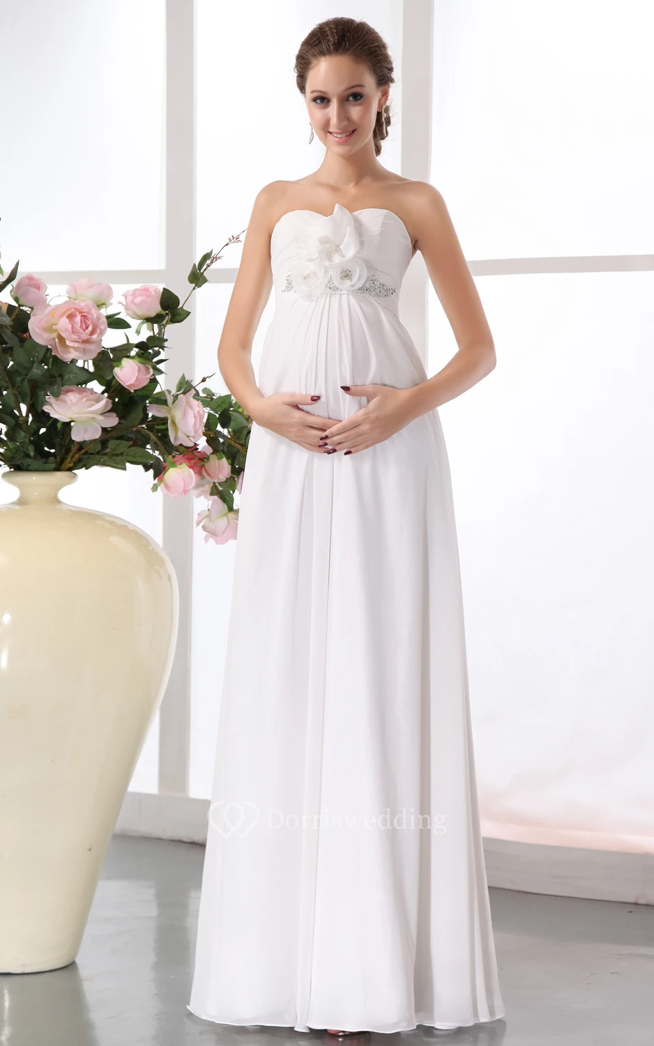 Floral Sweetheart Chiffon Empire Wedding Dress With Pleating