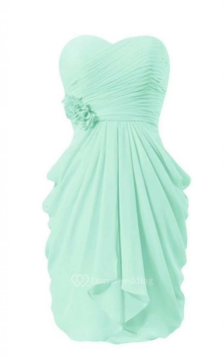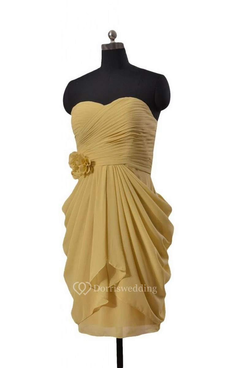 Floral Sweetheart Drapped Short Dress With Zipper Back
