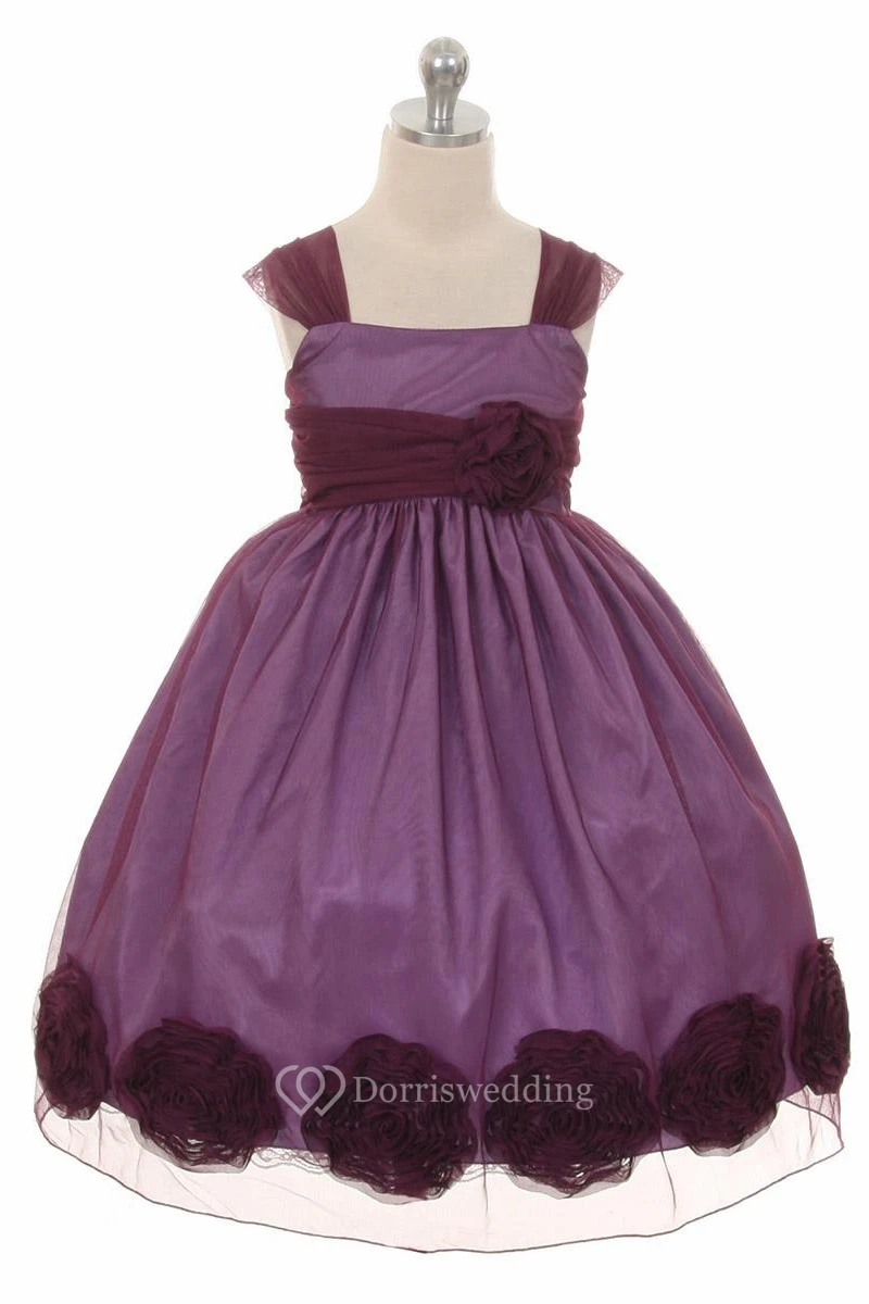 Floral Tea-Length Floral Pleated Empire Flower Girl Dress With Ribbon