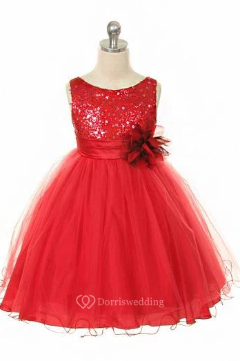 Floral Tea-Length Floral Sequins&Satin Flower Girl Dress With Ribbon