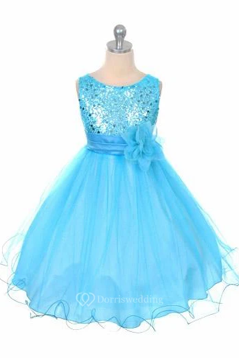 Floral Tea-Length Floral Sequins&Satin Flower Girl Dress With Ribbon