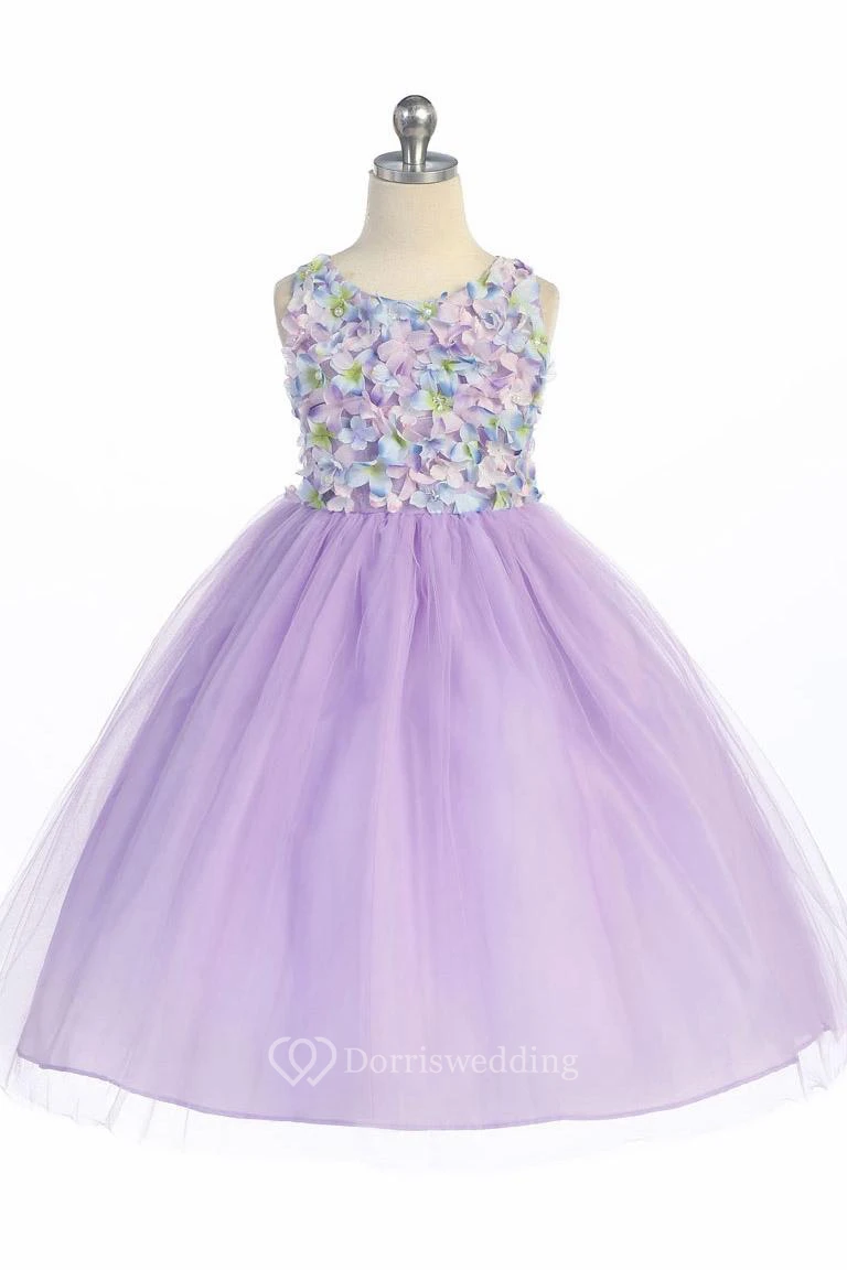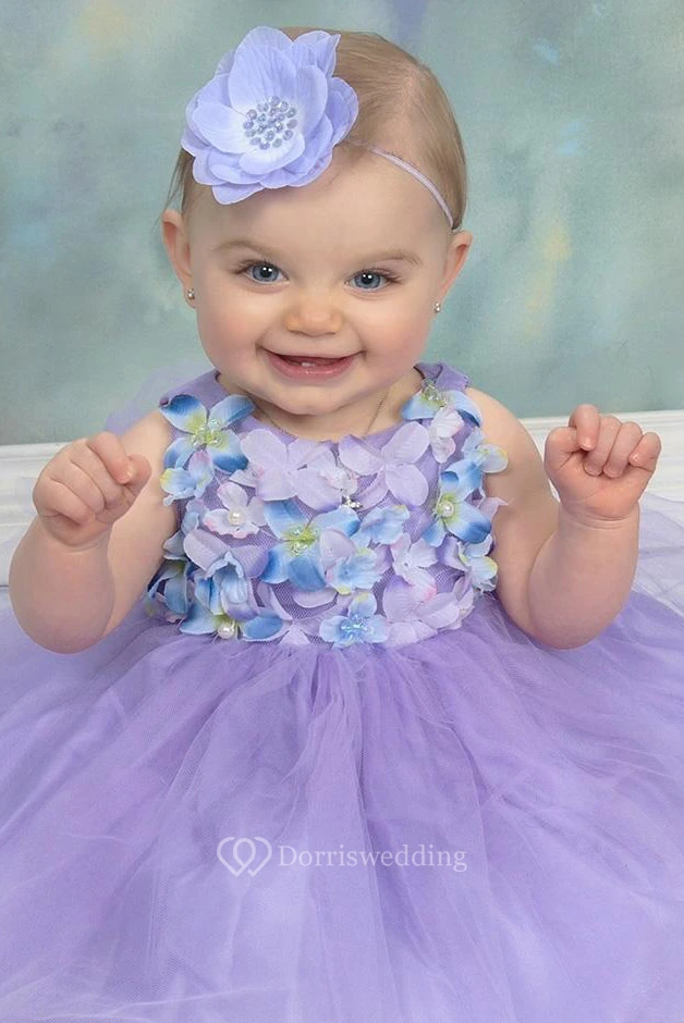Floral Tea-Length Floral Tulle&Sequins Flower Girl Dress With Sash