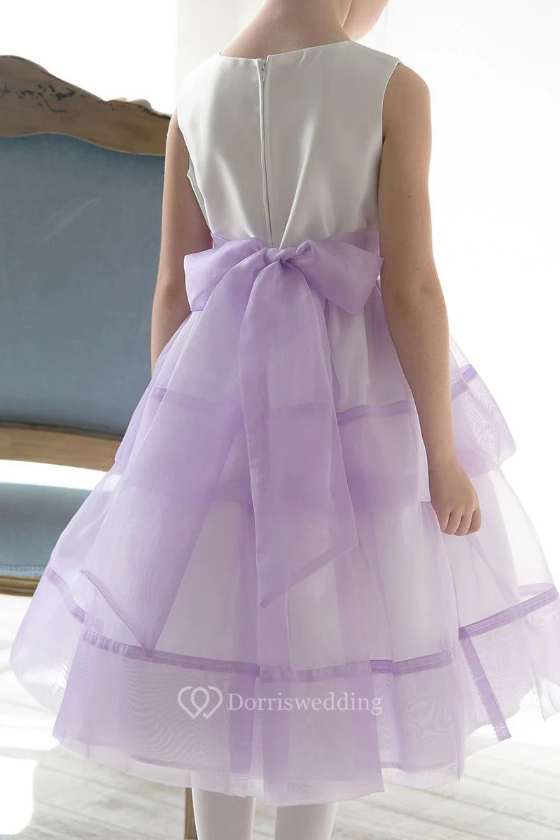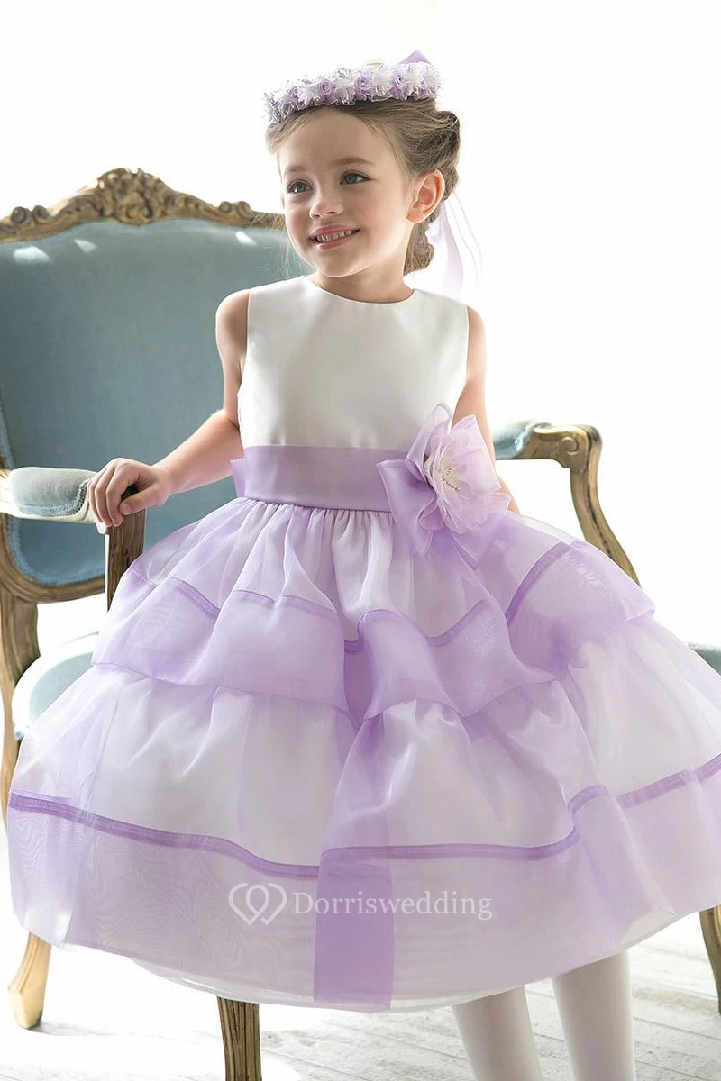 Floral Tea-Length Tiered Beaded Sequins&Organza Flower Girl Dress With Split Front