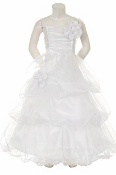 Floral Tiered Organza Flower Girl Dress With Ruffles
