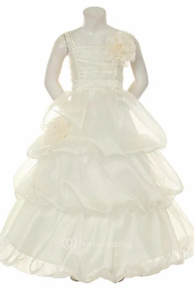 Floral Tiered Organza Flower Girl Dress With Ruffles