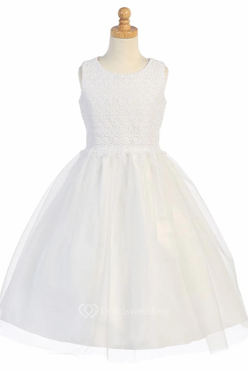 Floral Tiered Tulle&Lace Flower Girl Dress
