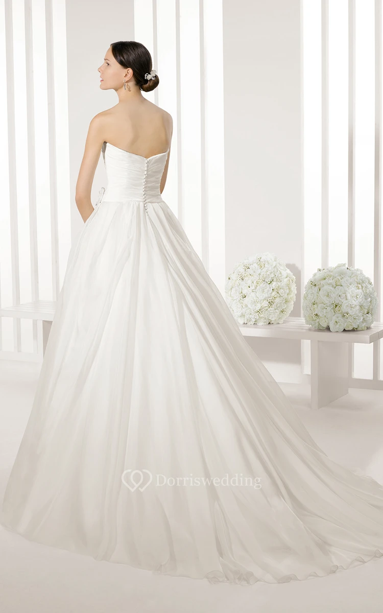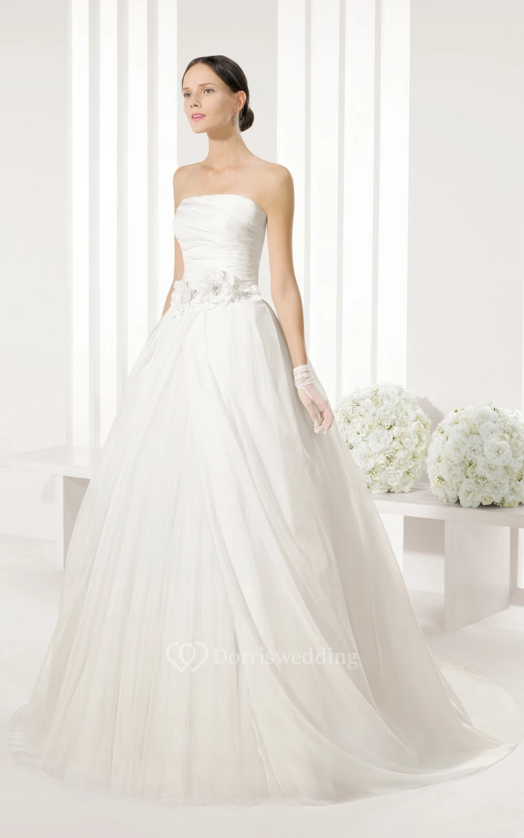 Floral Waistbtulle Top-Ruched Gown With Lace Cape