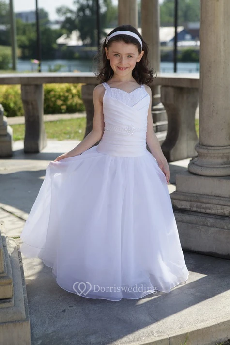 Flower Girl Drop Waist Ball Gown With Criss Cross Bodice