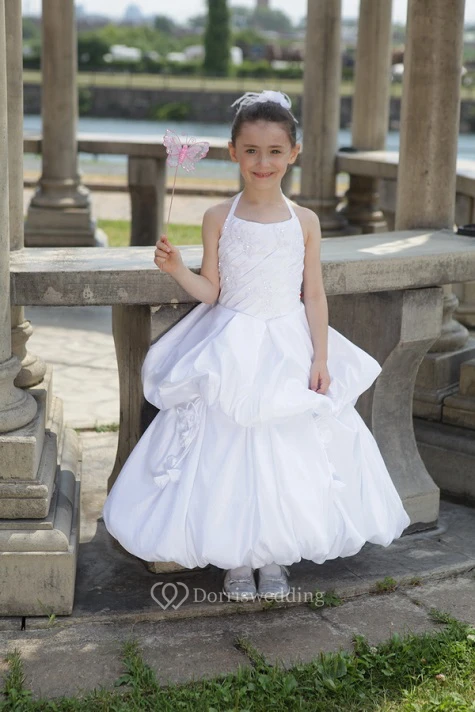 Flower Girl Halter Taffeta Long Dress With Ruffled Skirt