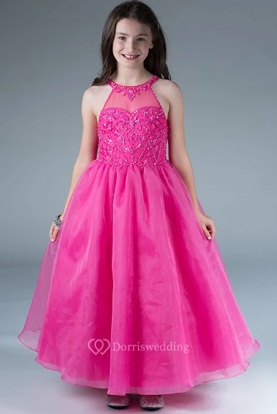 Flower Girl High Neck Sequined Top Organza Long Dress