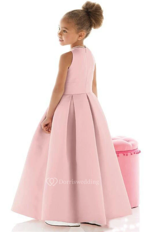 Flower Girl Jewel Cutaway Shoulders Satin Ball Gown With Pleats