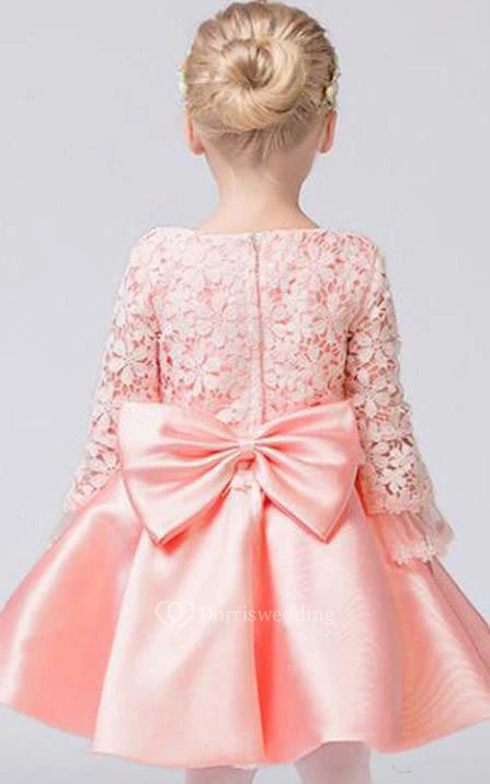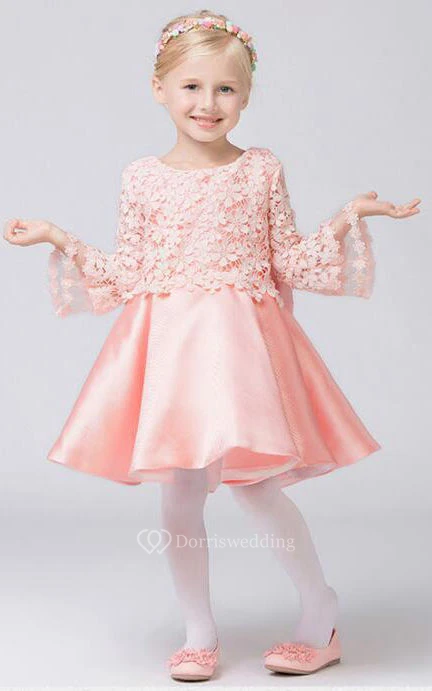 Flower Girl Jewel Neck Satin Mini Dress With Appliqued Top