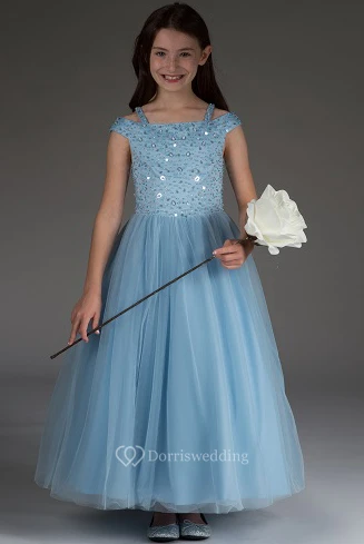 Flower Girl Off Shoulder Tulle Ball Gown With Crystal Bodice And Straps
