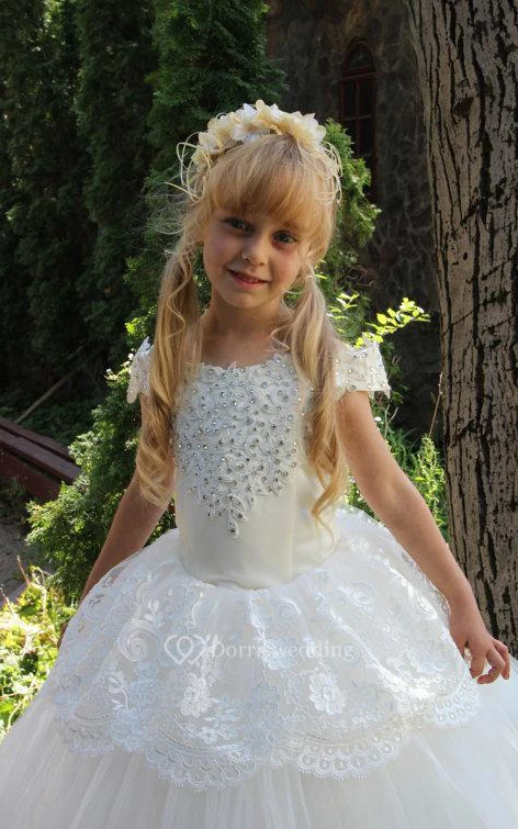 Flower Girl Off-the-shoulder Tulle Ball Gown With Lace