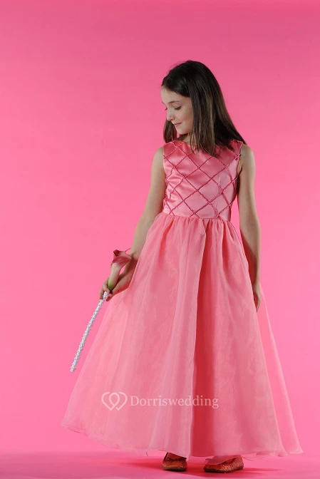 Flower Girl Scoop Neck A-line Pleated Long Dress With Beadings