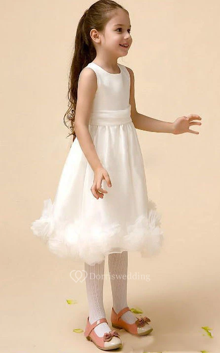 Flower Girl Scoop Neck Empire Organza Midi Dress With Floral Hem