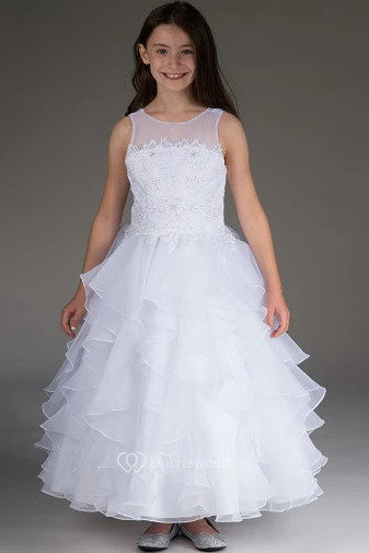 Flower Girl Scoop Neck Sleeveless Tiered Organza Ball Gown