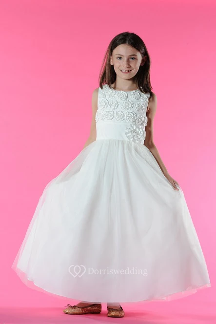 Flower Girl Scoop Neck Tulle Ball Gown With Flower Bodice