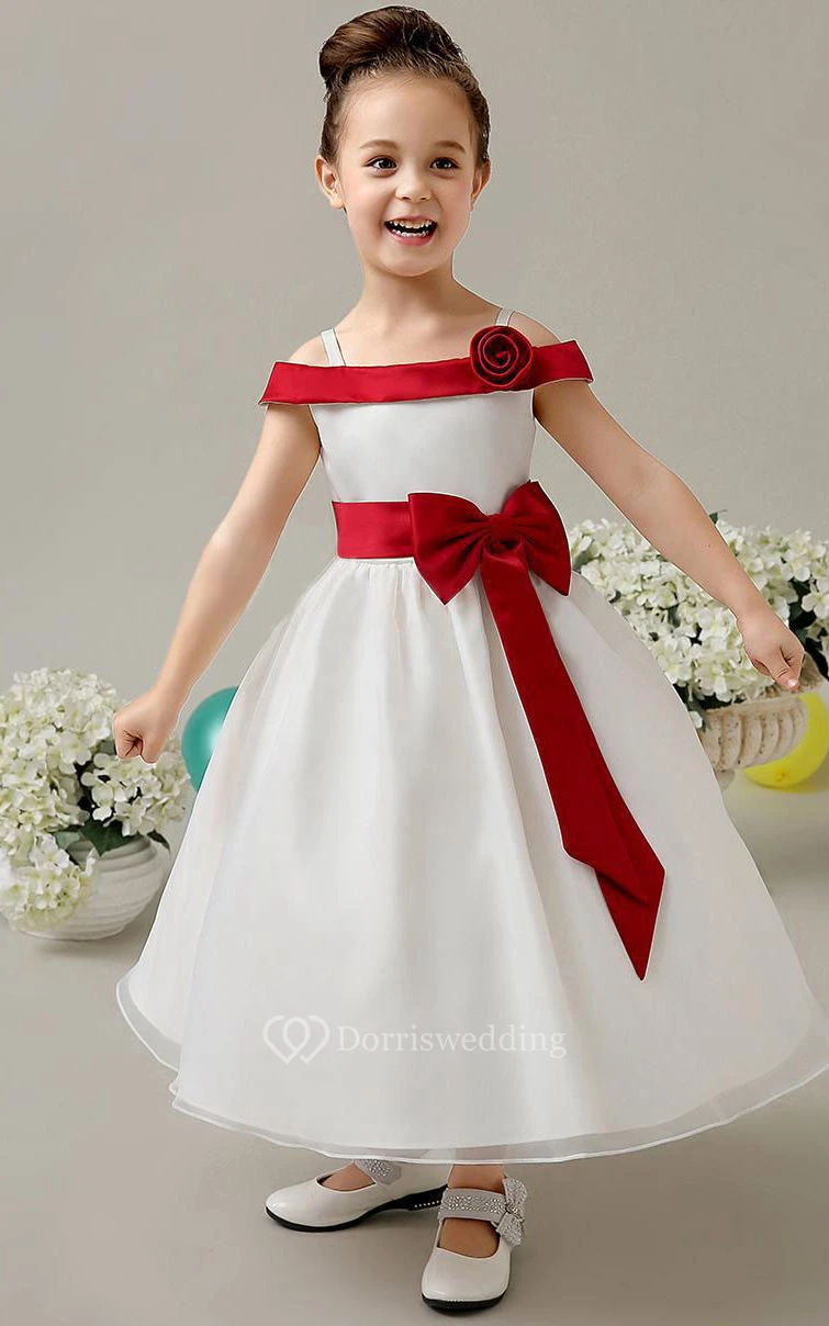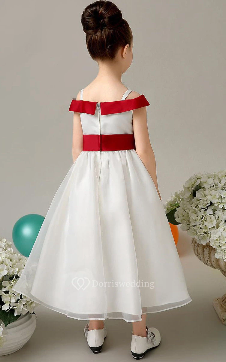 Flower Girl Straps Organza Ball Gown With Fold Over Collar