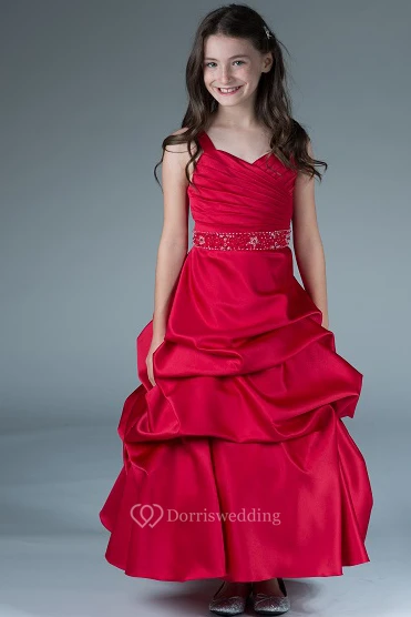 Flower Girl V Neck Taffeta Ball Gown With Ruffles And Beading Waist