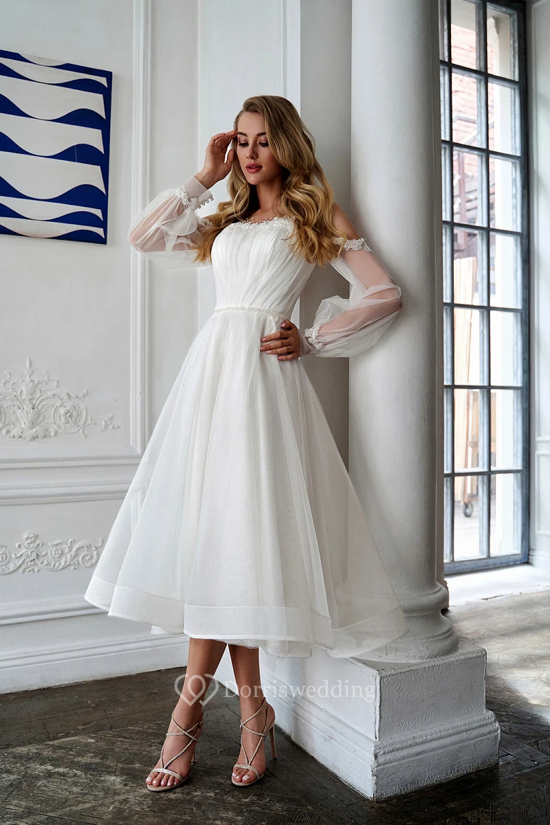 • Hemline/Train: Tea-length