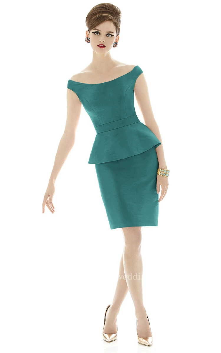 Form-Fitted Cap Sleeved Satin Gown with Bateau Neckline and Waistband