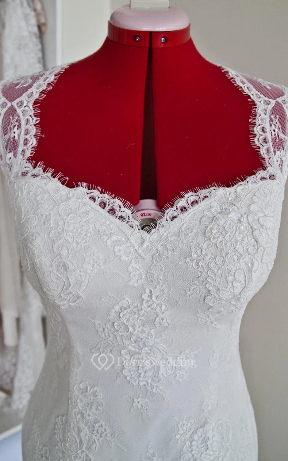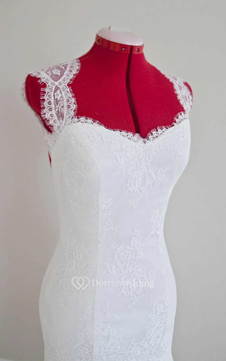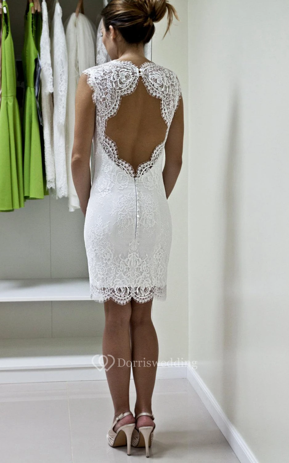 Form-Fitted Lace Sleeveless Short Bridal Dress With Queen Anne Neckline and Keyhole Back