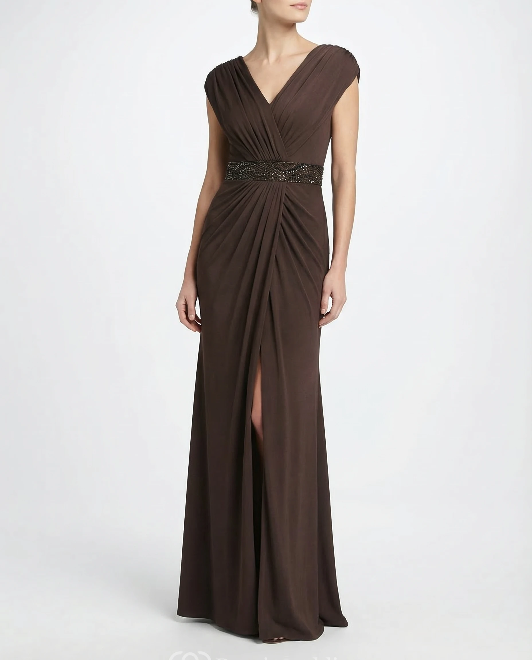 Front Slit V-Neck Mother of the Bride Dress