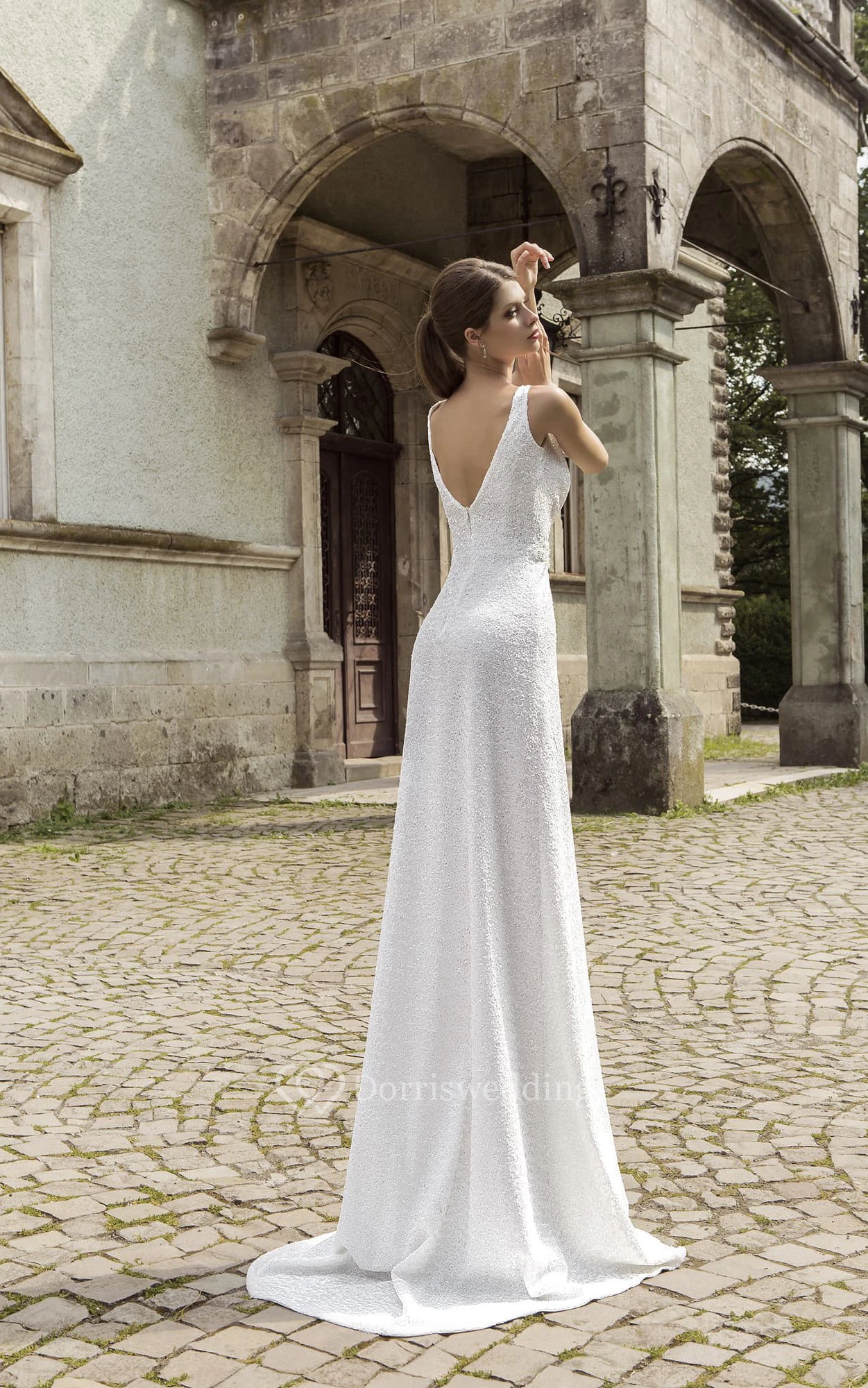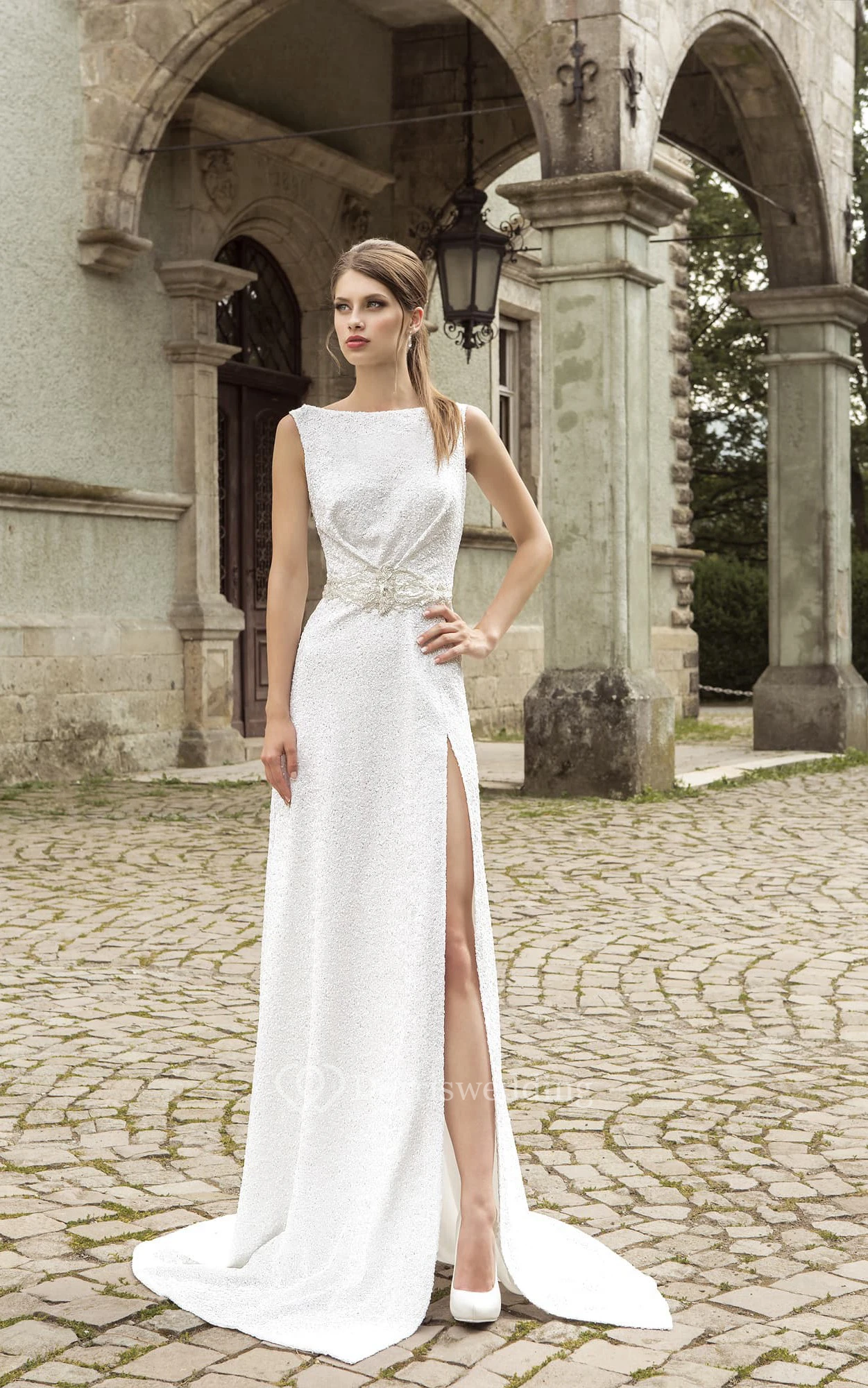 Front-split Sleeveless Low V Back Dress With Crystal Detailing