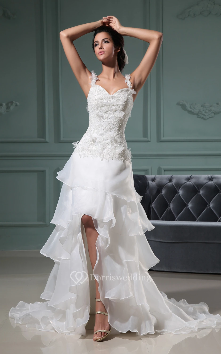 Front-Split Sweetheart Dress With Ruffles and Spaghetti Straps