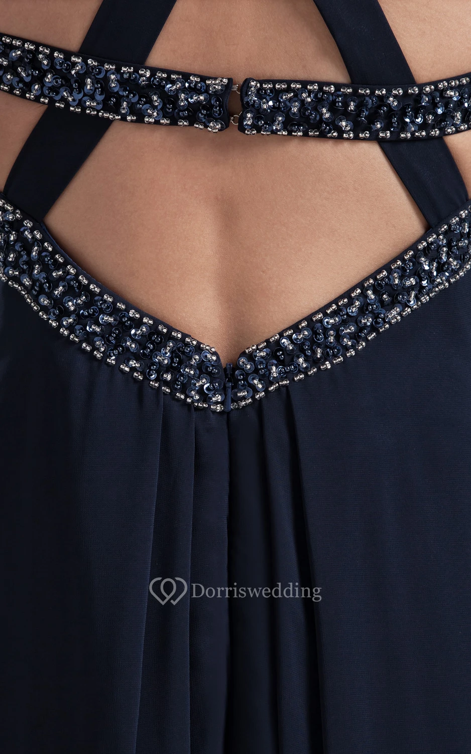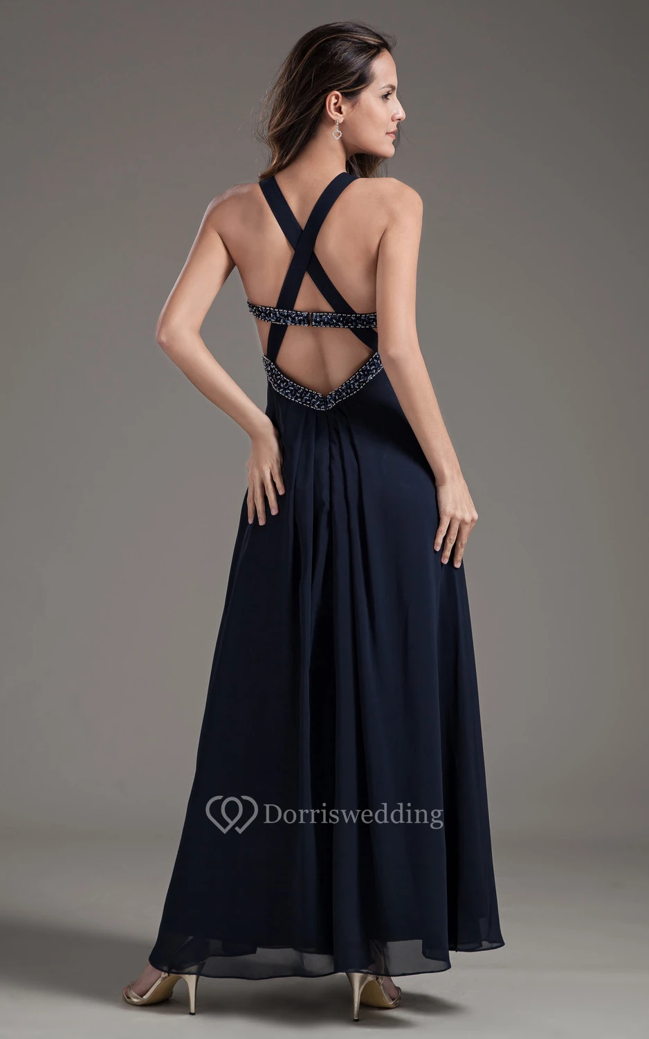 Front Splited Sleeveless Chiffon Long Dress With Beadings
