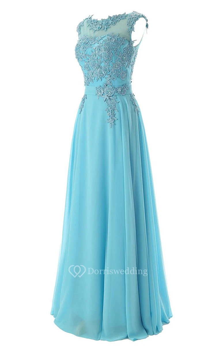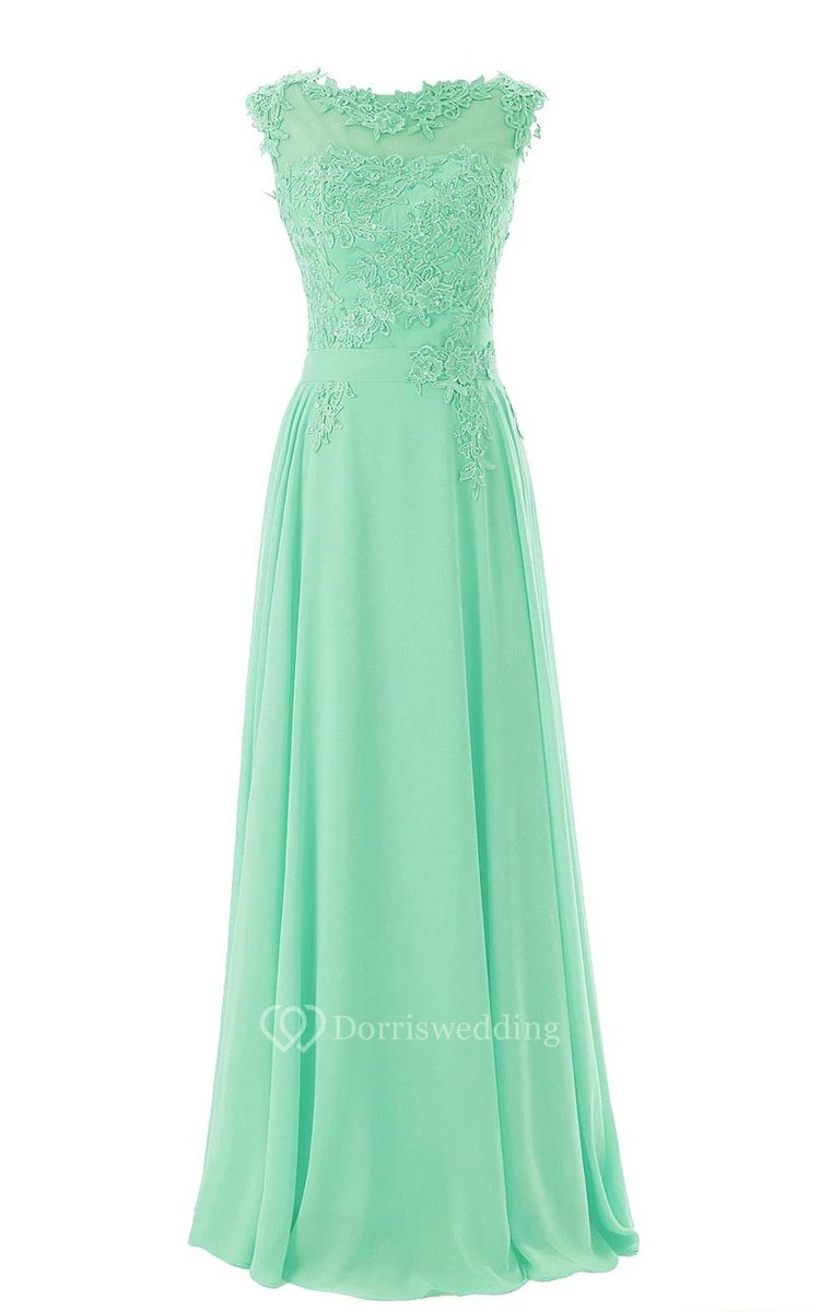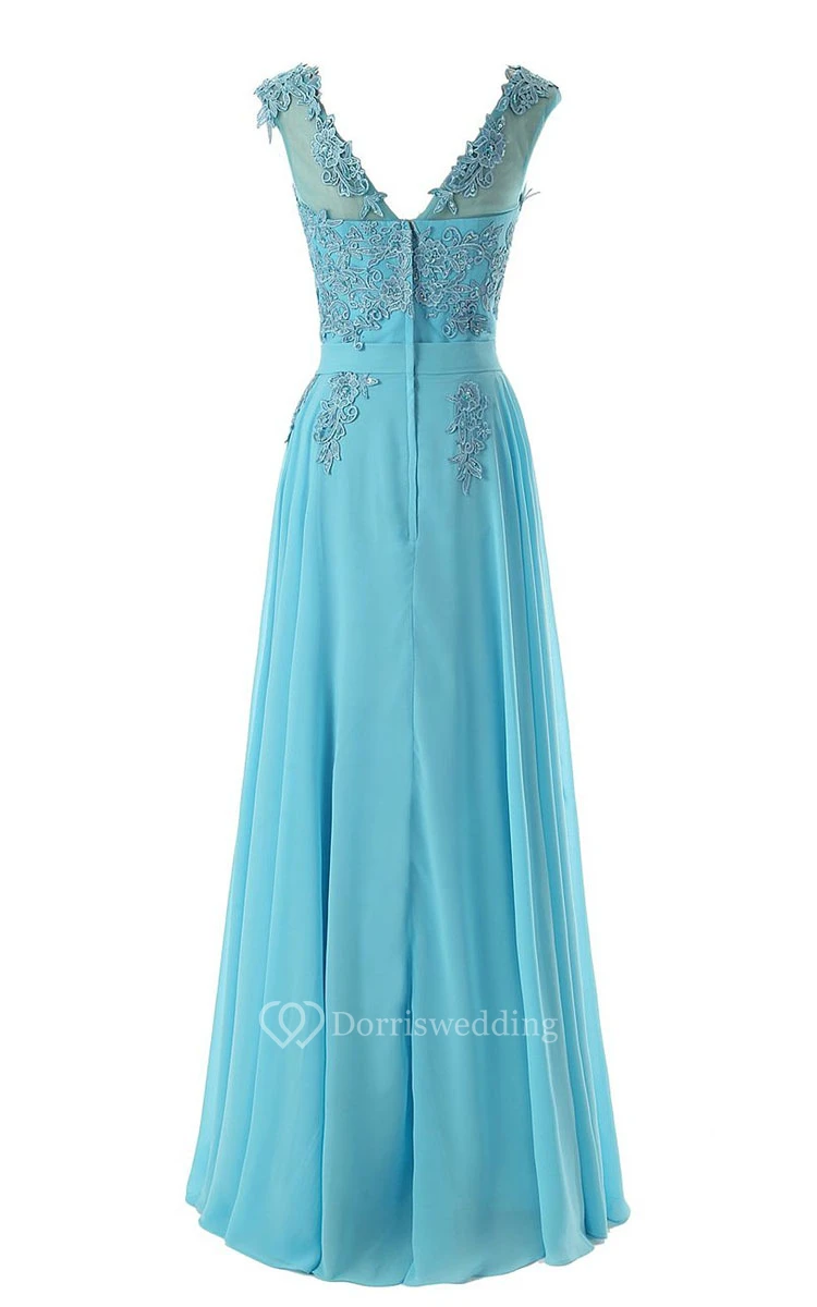 Full Length Flower Appliques Gown With Low-v Back