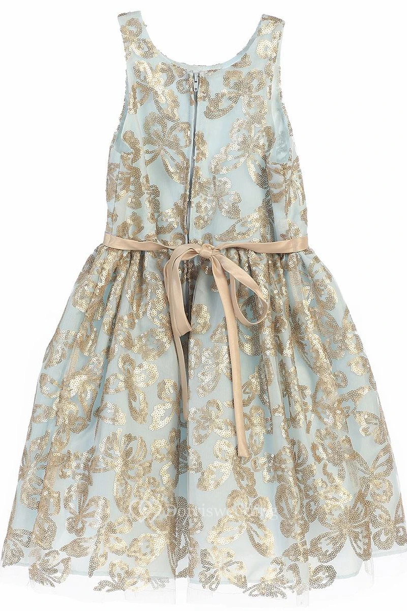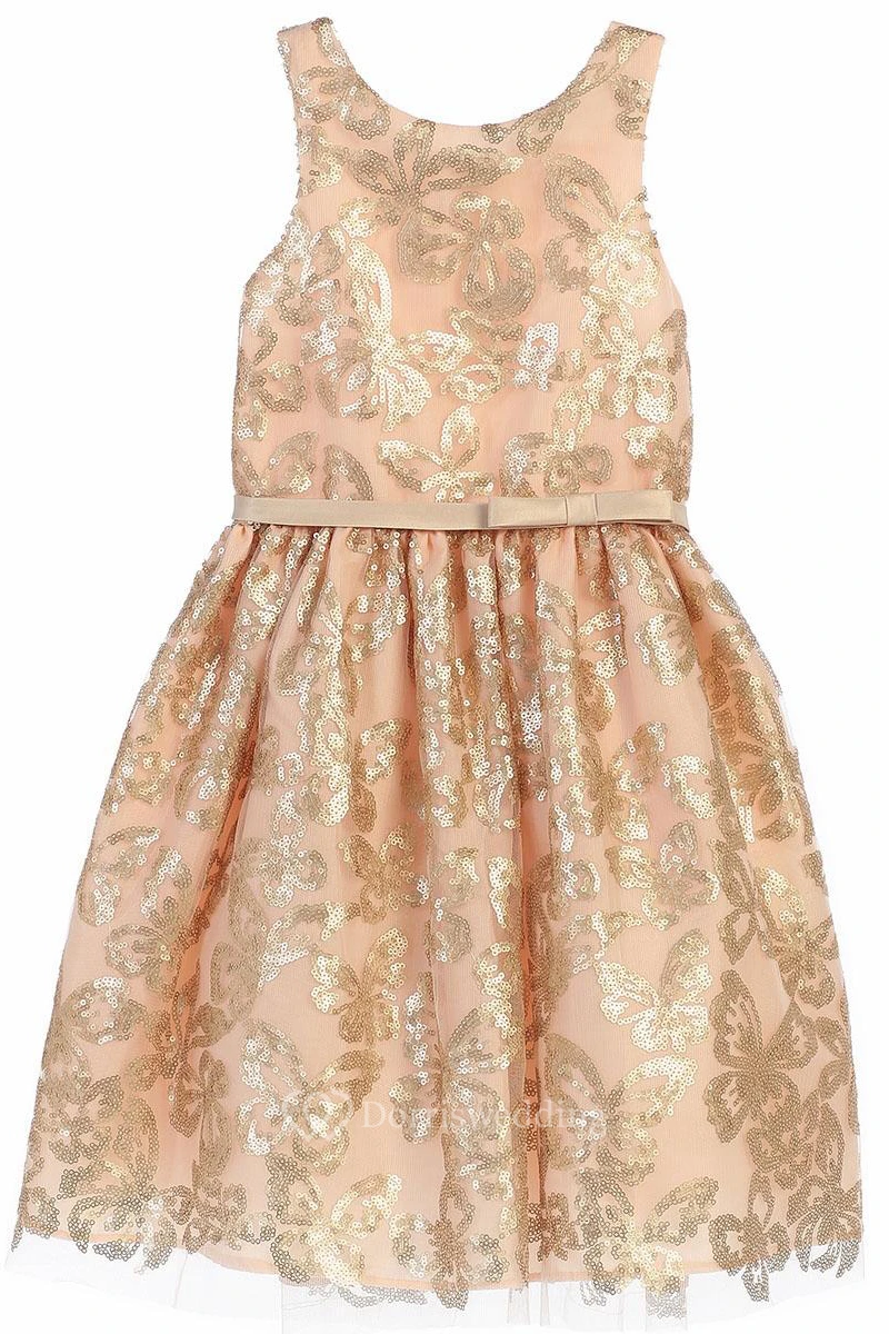 Knee-Length Appliqued Bowed Tulle&Sequins Flower Girl Dress With Tiers