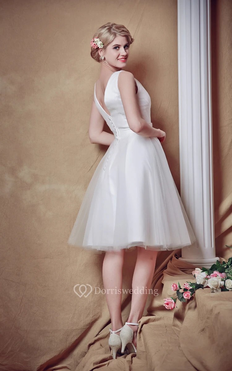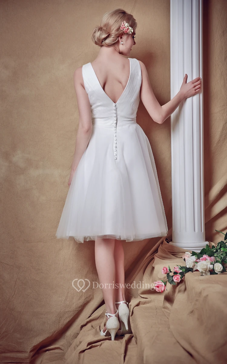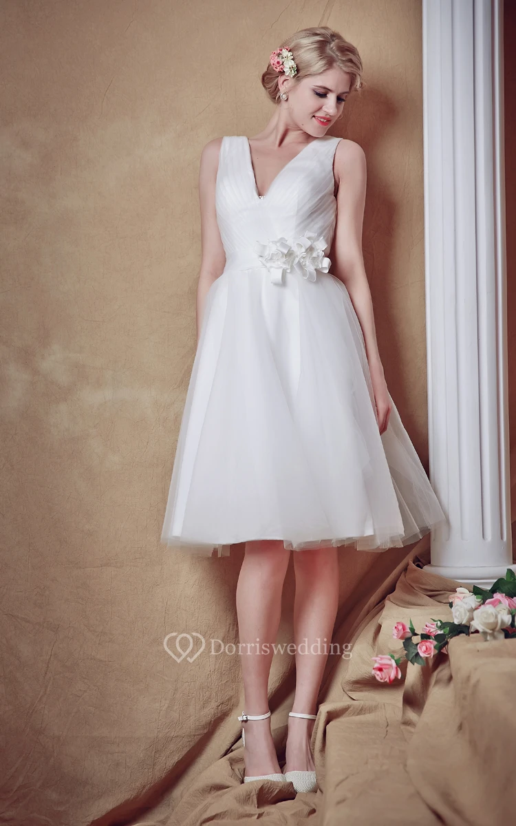 Glam Lovely Sleeveless V-neck Belted Short Wedding Dress