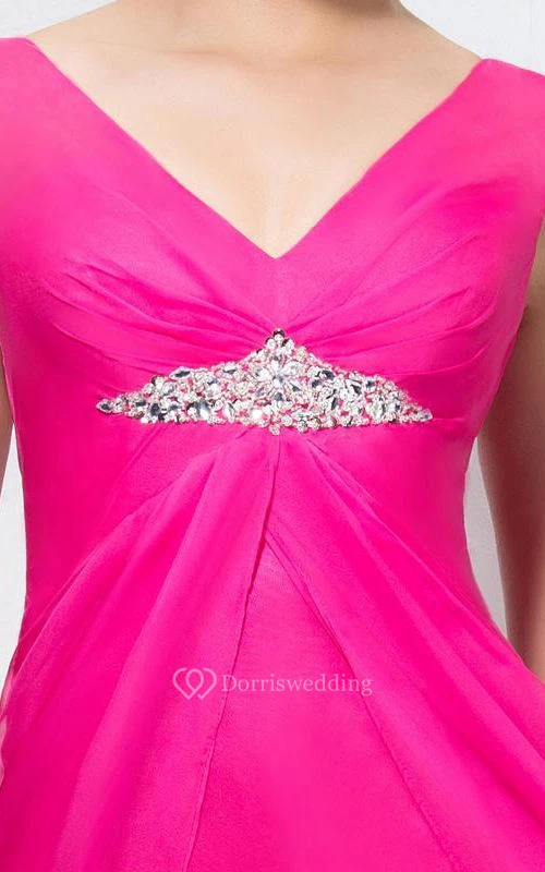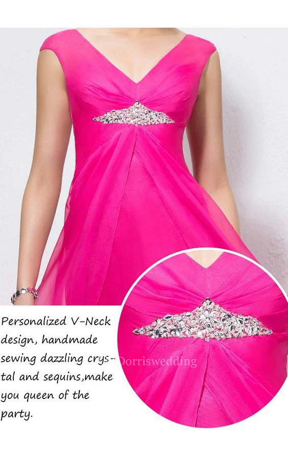 Glamorous A-Line V-neck Sequins Zipper-up Prom Dress