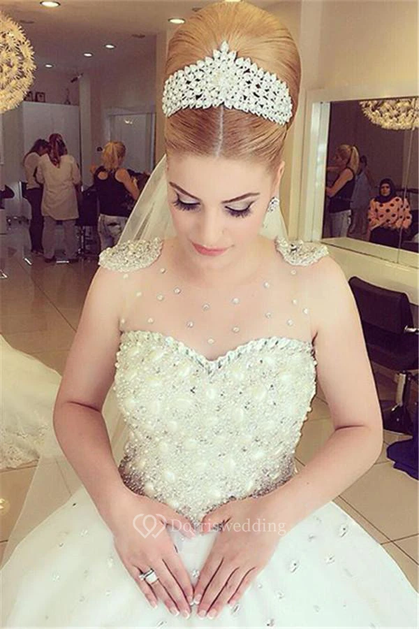 Glamorous Beading Tulle Wedding Dress Ball Gown Floor-length