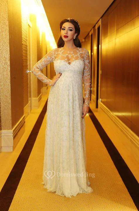 Glamorous Beadings Appliques A-line Evening Dress Long Sleeve