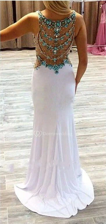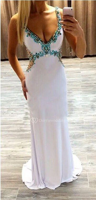Glamorous Beadings Crystal V-Neck Evening Dress Sleeveless Long Party Gowns