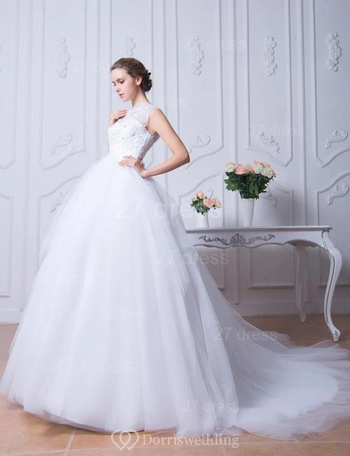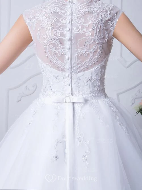 Glamorous Beadings White Tulle Wedding Dress Ball Gown Bowknot