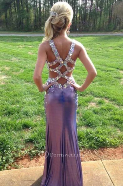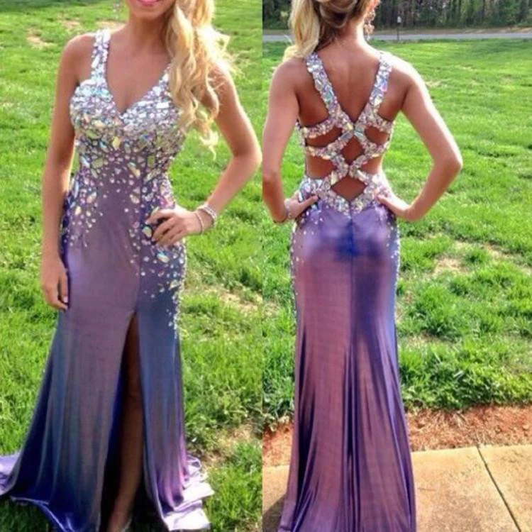 Glamorous Crystals Mermaid Front Split Prom Dress Straps Zipper