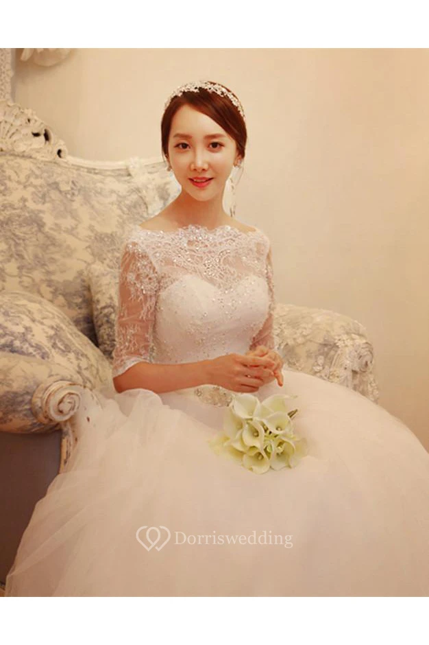 Glamorous Half Sleeve Lace Appliques Wedding Dress Princess Lace-up