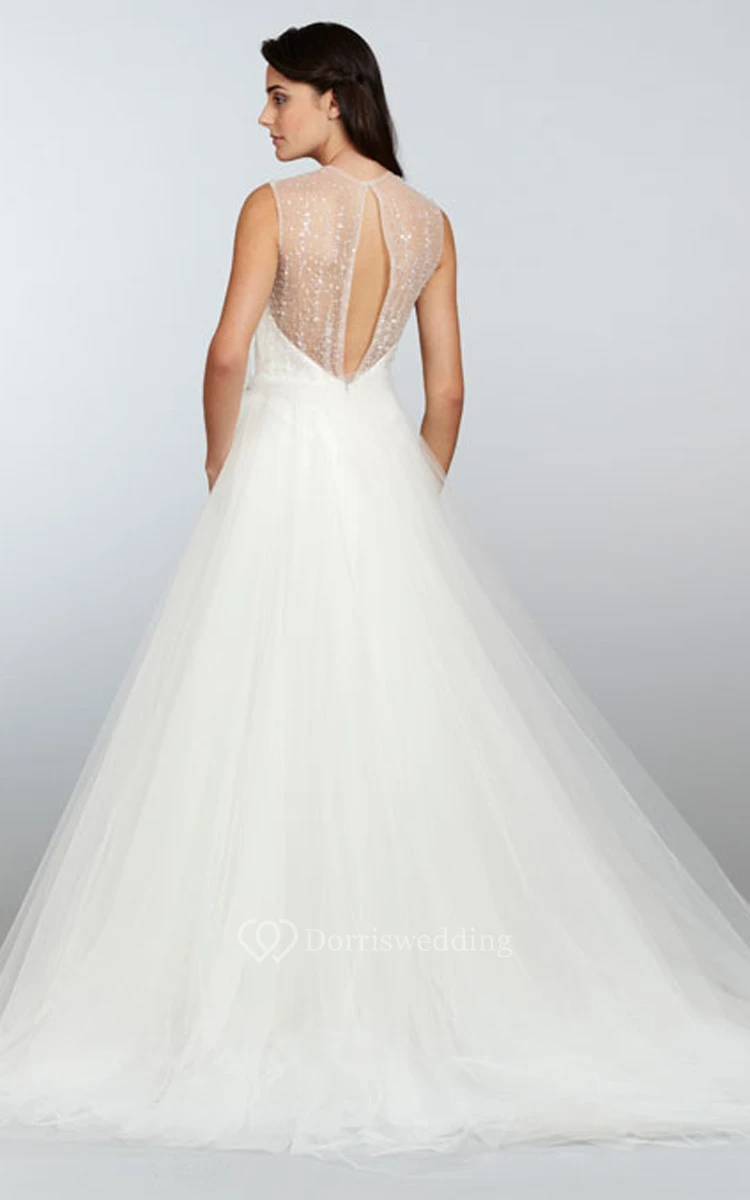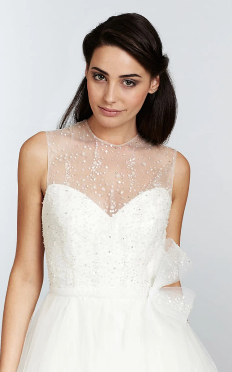 Glamorous Illusion Neckline Tulle Dress With Beaded Detail