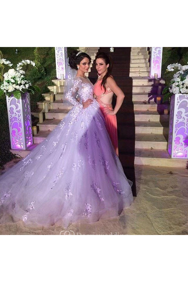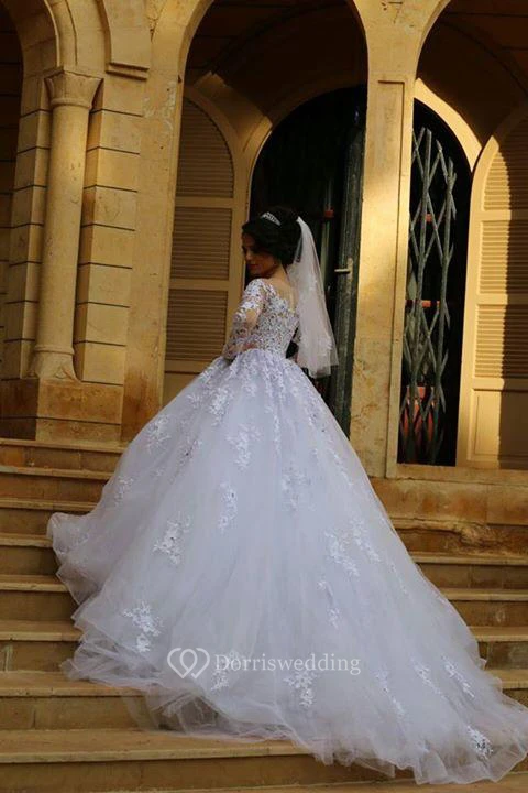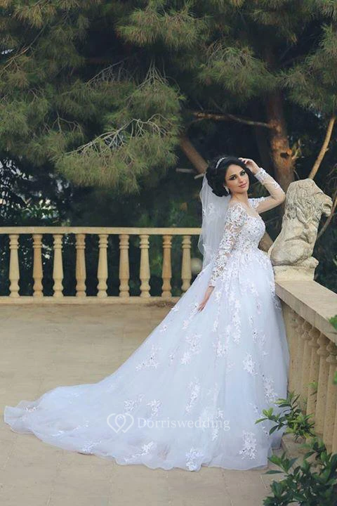 Glamorous Illusion Tulle Lace Appliques Wedding Dress Long Sleeve Zipper