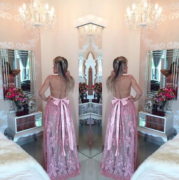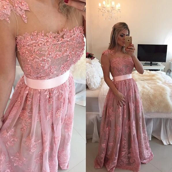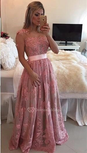 Glamorous Lace Appliques A-line Prom Dress Beadings Bowknot