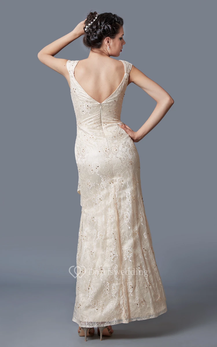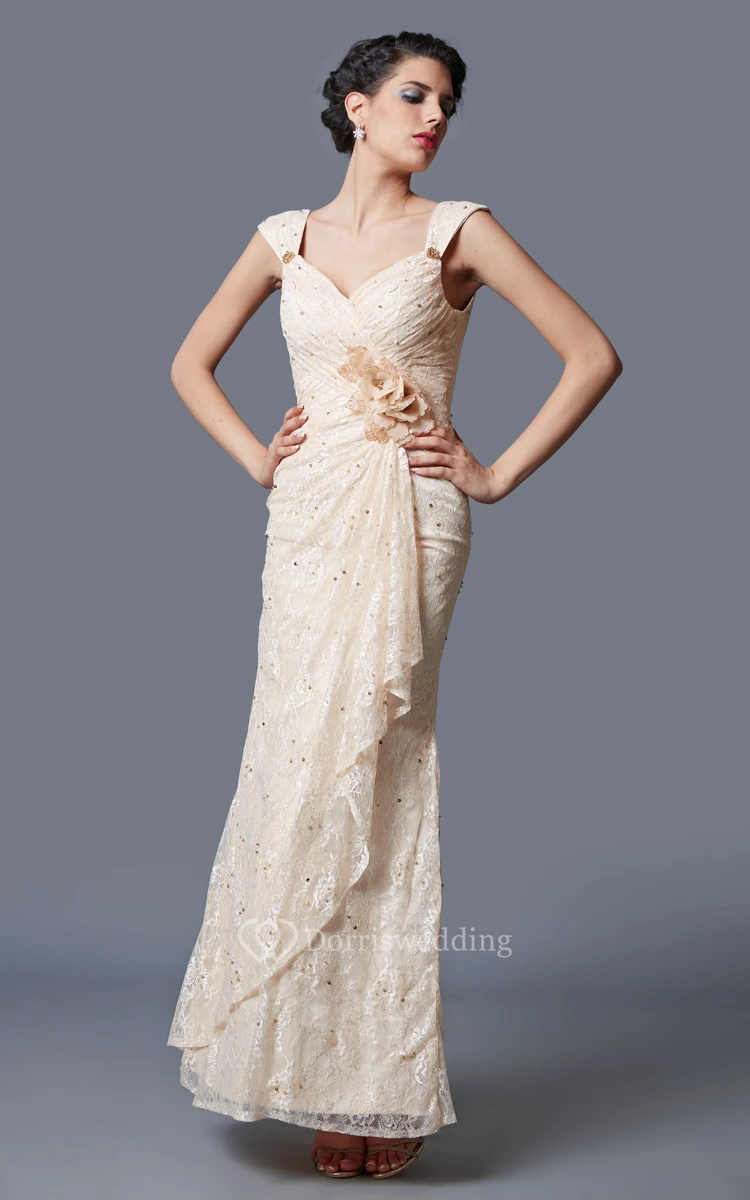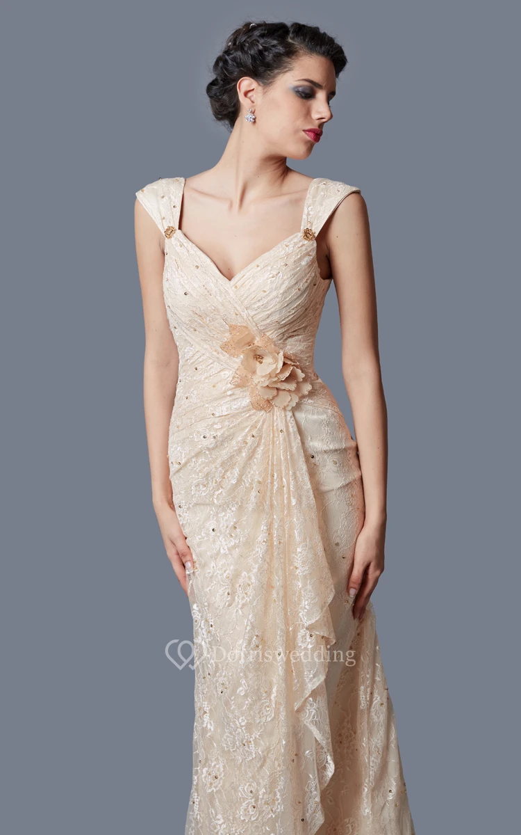Glamorous Lace Embellished Long Gown With Ruching