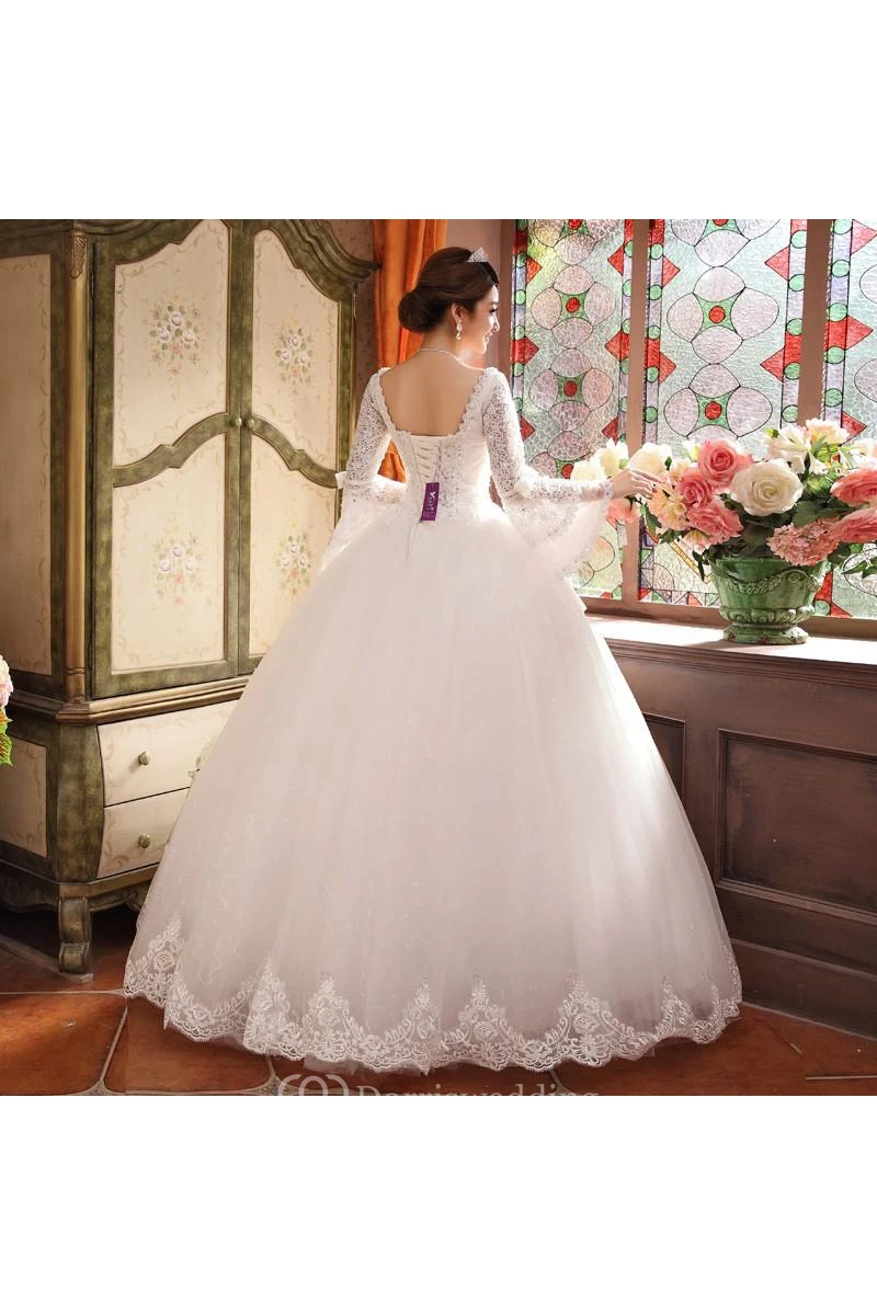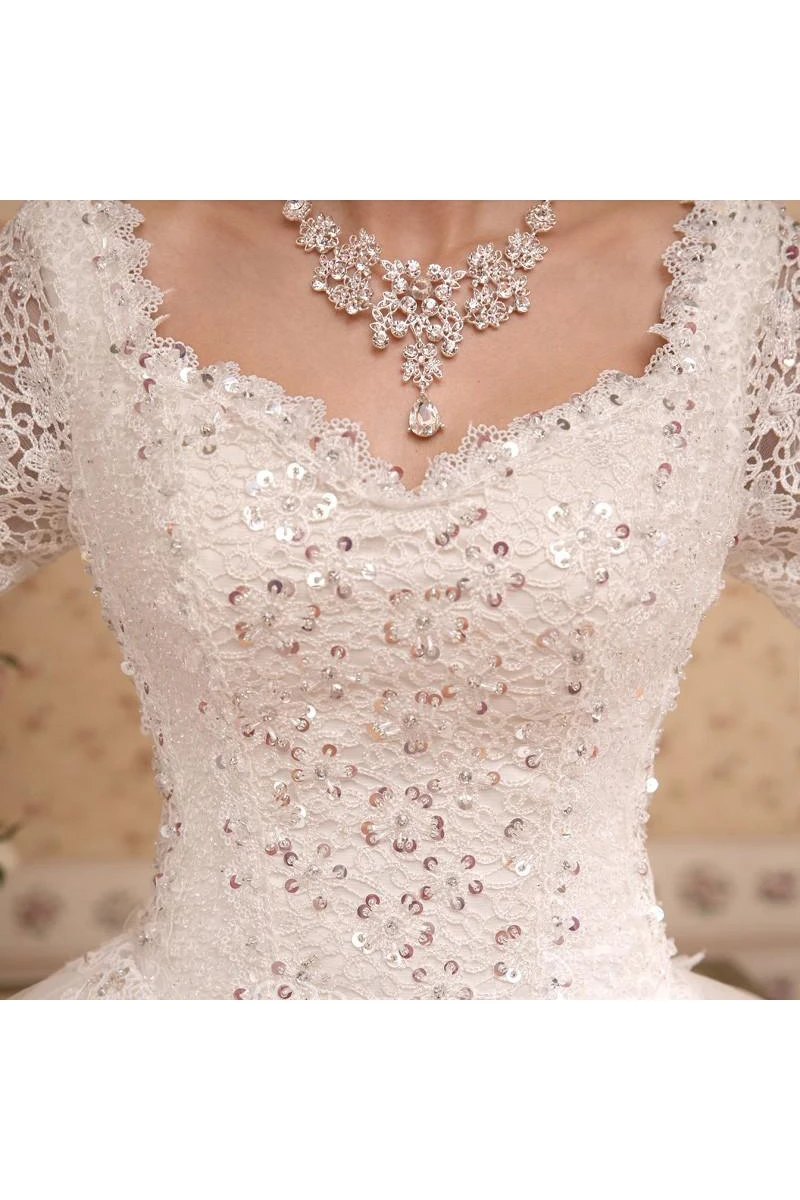 Glamorous Long Sleeve Sequins Lace Wedding Dresses Ball Gown Tulle